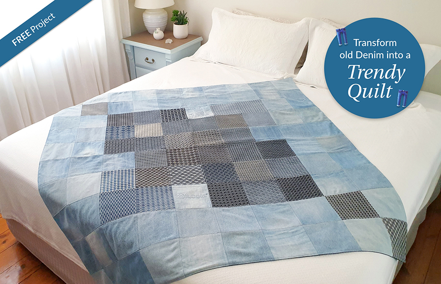 Enhance Your Home with an Eco-Friendly Upcycled Denim Quilt Featuring Sashiko Motifs